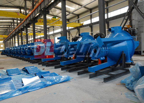 DF (DHF) series vertical froth pump or centrifugal foam pump are designed with double casing design, including rubber lined froth pump, centrifugal pump, mining froth pump. These centrifugal foam pumps feature high efficiency, wear-resistance, stable performance and great interchangeability. The material of liner and impeller is wear-resistant metal or rubber. The centrifugal froth/foam pumps do not need sealing, and the hopper can use liners. They may deliver the slurries of more flow and higher head with small installation space. The vertical froth pumps may be driven by belt or direct coupling. DF (DHF) series centrifugal foam pump should rotate clockwise viewing from the drive end.