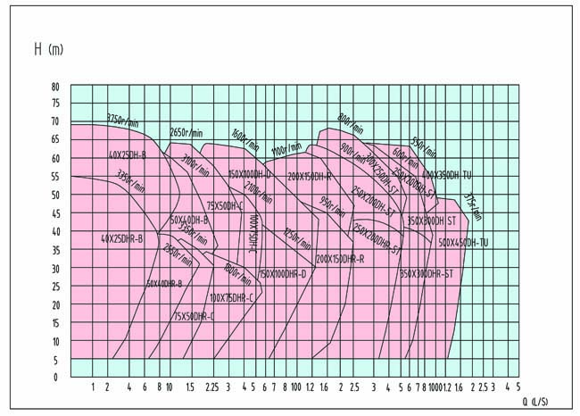 Note:1. M: wear-resistant alloy material RU: rubber2. Capacity range recommend: 50% Q’≤Q≤110%Q’ (Q’≈ appropriate to capacity at highest efficiency point) 3. NPSH: appropriate to point Q suggested at highest speed |